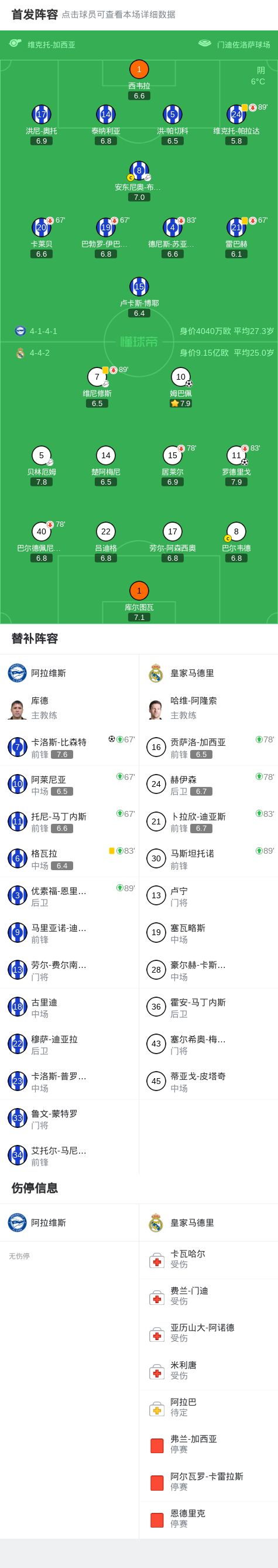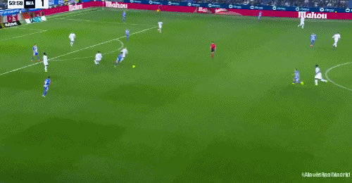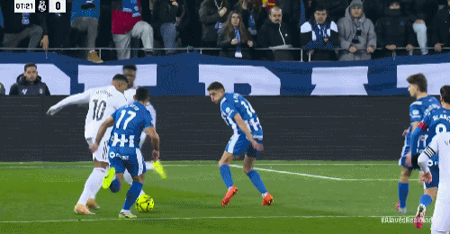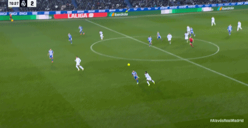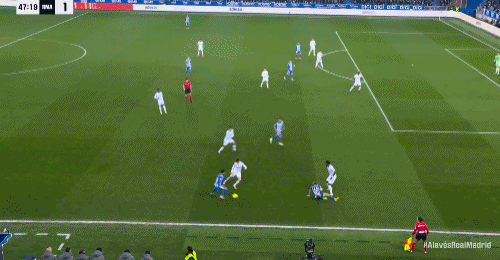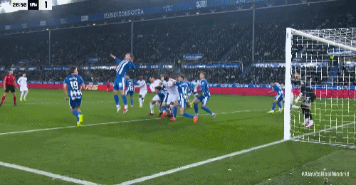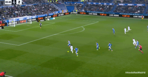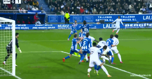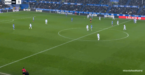 第69分钟,上场就进球,比森特单刀抽射破门,阿拉维斯1-1皇马